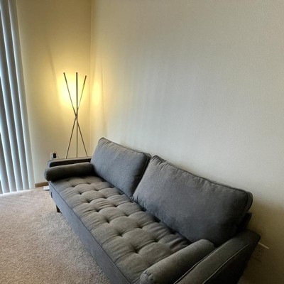 [This review was collected as part of a promotion.] This couch looks really nice and was very easy to assemble! My husband and I were able to put it together in just a couple minutes. I think it could look good in any style of home and various rooms. The couch is relatively small so works for a tiny space or as a 2nd couch. The couch seems sturdy and has held up to my kids jumping on it. It is not the most comfortable couch, I probably wouldn't choose to take a nap on it. Overall, I think it is a good couch and recommend it!