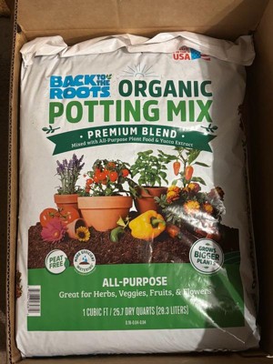 Back to the Roots 25.7qt Organic Potting Mix Premium Blend All Purpose: Soil for Flowers & House Plants, Peat-Free
