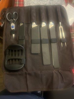 This is an essential set for any BBQet. The selection of knives is perfect. I am most impressed by the fork. It is super thick and holds up well to large cuts of meat. The roll is thick and well made. Very happy with my purchase!