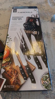 [This review was collected as part of a promotion.] I have owned Henckels knives for many years and love them. They are well constructed, hold an edge, and are easy to use and clean. I recently purchased a top-of-the-line smoker and decided to get the Henckels 9-pc BBQ Carving Tool Set. The knives are the quality I expected from my previous Henckels, and the carving fork, sheers and bear claws are a great add to my collection. The canvas roll bag if heavy material and great for transporting the tool set.