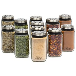Durable glass design- long-lasting quality construction makes these spice jars ultra durable-- Individual jars hold 180 mL and measure at 4" x 2.3" x 2.3"