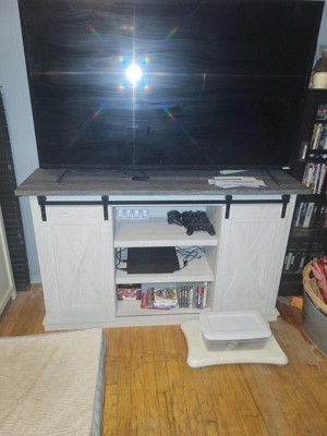 I really liked this TV stand, has a lot of space. The shelves are adjustable, holes in the back for the connections, and a lot of space.