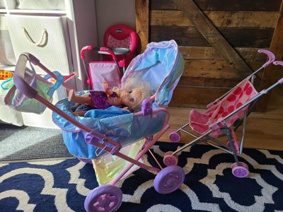 [This review was collected as part of a promotion.] The Dreamland Baby Doll Deluxe Stroller is a big hit in my house!! It's such a cute little stroller and these granddaughters are loving it to push their baby dolls around in it. The Iridescent color just makes it so much more cuter.. Definitely do recommend this stroller.