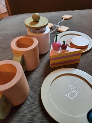 [This review was collected as part of a promotion.] I love this cute little tea set! My 4 year old niece loved playing with this! This tea set is made with nice durable wood and has pretty bright colors! I love the little cookies and tea bags it comes with as well. This has many pieces and pairs perfectly with a play kitchen!