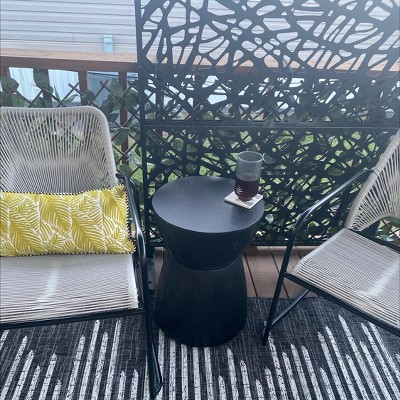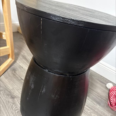 Perfect side table. Purchased to put between two chairs in our basement and I love the style and look of it.