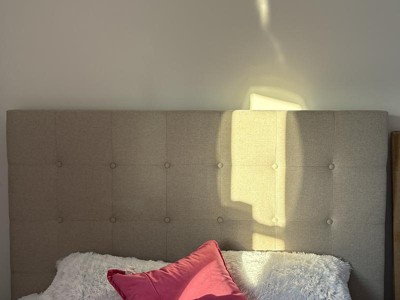 This bed is stunning. Easy to put together and just a beautiful piece . Very comfortable headboard