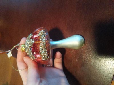 I ordered this ornament online and had it shipped. This mushroom is prettier in person than it photographs, so I was pleasantly surprised. I love the soft reflective shimmer. I love that it is not garishly bright, but is pretty. There is a slight thin spot in one area on the red paint, but it is still pretty. I am glad that I bought it.