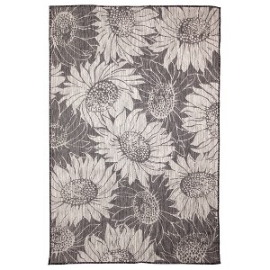 This nature inspired area rug features an oversized sunflower design in stylish grey and black hues. Made in Turkey from 87% Polypropylene/13% Polyester, the performance Carmel Collection is Power Loomed to create subtle, naturally beautiful multi-toned detailed designs with a high-quality finish. The material is flatwoven, UV stabilized, fade resistant, durable and ideal for those high traffic areas such as your patio, deck, kitchen, bedroom and living room making this the perfect indoor or outdoor rug. A fresh take on traditional area rugs, patterns range from tropical, coastal, contemporary and classic to seamlessly tie together the design of your home. Limiting exposure to rain, moisture and direct sun will prolong rug life.