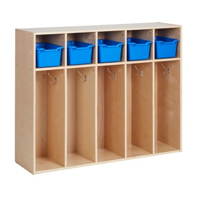 ECR4Kids Streamline 5-Section Toddler Coat Locker and 5 Scoop Front Bins, Cubby Storage, Natural
