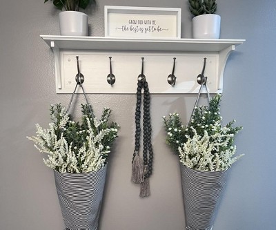 Wood Entryway with Shelf Ivory - Threshold™: Wall Mounted Coat Rack with 5 Hooks, Silver Plated Finish