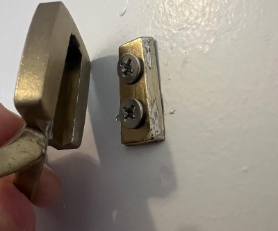 Likely the worst hanging hardware I've ever tried. The face plate does not fit onto the back plate - I attempted to put the two together off the wall as well, but alas, I unfortunately didn't do this until after I couldn't get the two pieces to fit together. I now just have two screw holes on my door.