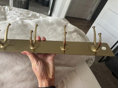 New Traditional 5 Hooks Rail Gold - Threshold™: Wall Mounted Decorative Hook Rack, Light Gold, Zinc Alloy, 40lb Capacity