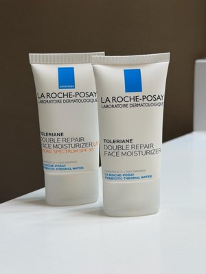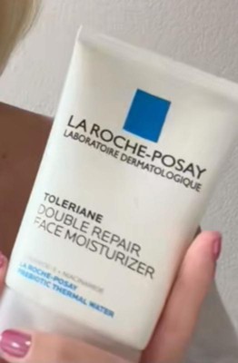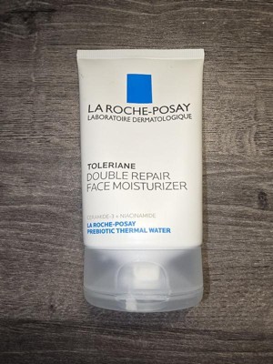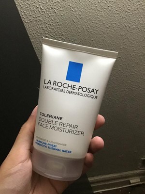 La Roche-Posay Toleriane Double Repair Face Moisturizer is an oil-free face moisturizer that helps to hydrate and restore a healthy look to the skin. It's formulated with a high concentration of Prebiotic Thermal Water, Ceramide-3, Niacinamide, and Glycerin. Double action helps repair skin's natural protective barrier after 1-hour and provides up to 48 hours of hydration. The lightweight cream texture absorbs easily into the skin to provide immediate comfort without clogging pores.