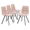 Add a fresh look to your kitchen or dining space with the Set of 4 Rho Dining Chairs from Buylateral. The modern flair of these chairs features tufted seats and backs which add a textured appearance upholstered in a pink linen-like fabric. A Mid-Century modern vibe highlights the outward styled metal legs providing stability along with style.