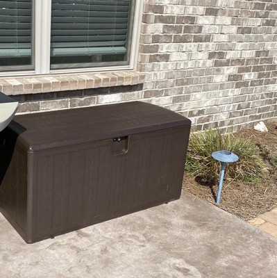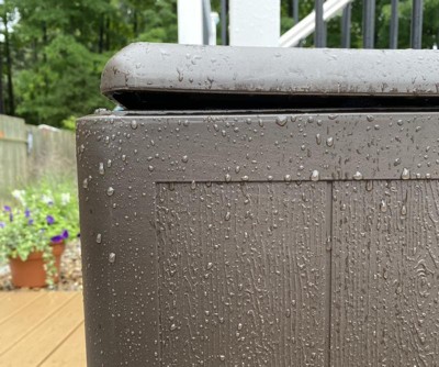 I recently purchased the 105 Gallon Deck Box and I am extremely satisfied with my purchase. The extra-large resin storage box is perfect for storing all of my patio furniture cushions, gardening tools and other outdoor accessories. The lockable lid is a great feature that provides extra security, giving me peace of mind that my belongings are safe and secure. The deck box is water proof and UV resistant, making it perfect for outdoor use. I don't have to worry about the contents inside getting wet or damaged due to harsh weather conditions. The weather-resistant design is also great as it keeps my belongings safe and dry, even during heavy rain or snow. Assembly of the deck box was simple and straightforward, taking me only a few minutes to put together. The sleek and modern design of the deck box blends in nicely with my outdoor decor and the extra-large size ensures that it fits comfortably on my deck without taking up too much space.