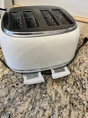 This 4-slice Dorset toaster was a welcomed addition to our home. I was a little apprehensive about how the vintage look would complement our kitchen and was pleasantly surprised to see how stylish it looked! The handles are easy to use when lowering toast or bagels but I really have to say how excited I am with the "extra lift" it provides to make accessing smaller items a breeze. The removable crumb tray makes cleanup extremely easy and I love that I can clearly see how many minutes I am adjusting it to. Bonus - it's one of the lightest toasters I've ever owned!