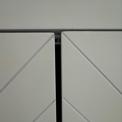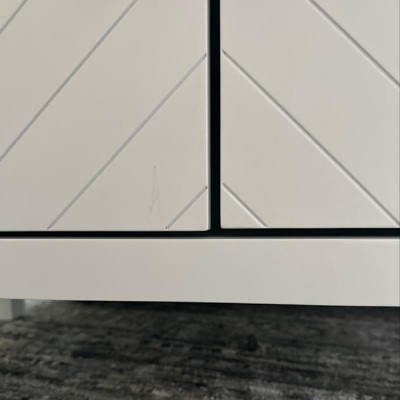 It’s a pretty cabinet but there is a big gap in between the doors and smaller gaps at the top and bottom of the doors. Putting together was ok, took me about 1 1/2 hours by myself. Very disappointed in the gaps,