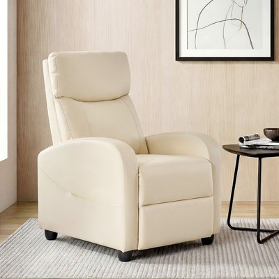 This chair has toppled me backward ands almost broke my neck. I am receiving therapy due to this chair. Please do not take this chair lightly, it will hurt you. It's such an uncomfortable chair. When I sit in it it hits my bottom and hips. I was looking for a recliner that was small enough to put in my bedroom. I choice this chair because the size seemed reasonable but this is the worst chair I could've bought. it's really a piece of junk. I'm throwing it out of my house. with I had never bought it.