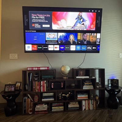 I purchased one of these and it is wayyy shorter than I anticipated, but when you buy two it’s so teaaaa. (And still a decent price, even after buying 2). I’m very picky with my furniture and haven’t been able to find another entertainment center that I liked as much as this one. And it was super easy to put together!! All you need is a screwdriver! I’m a girly girl and was able to put it together with ease in less than an hour.