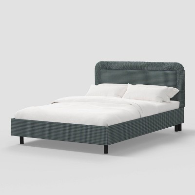 California King Larkmont French Seam Bed Zuma Textured Linen - Threshold™ designed with Studio McGee: Pine Wood, Upholstered Headboard
