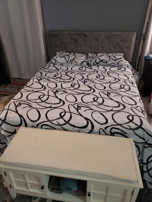 [This review was collected as part of a promotion.] The pattern is really nice. It’s super stylish and chic. It matches perfectly with my bedroom decor and adds a nice touch. You actually put your comforter inside this one and it attaches at the corners of the duvet, which is nice so it keeps it in place. The stitching is done nicely and I don’t notice and stitching fraying or coming undone. It fits my bed well and it’s very comfortable! Would definitely recommend.