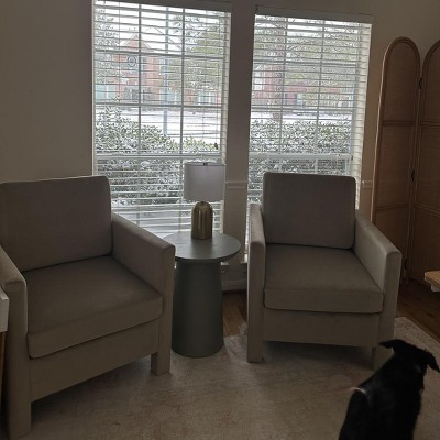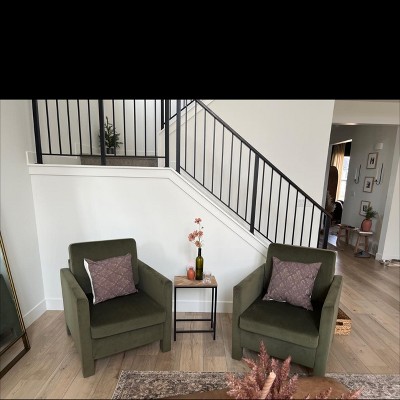 Absolutely love these chairs! The color is perfect and the velvet is a nice texture added to my room. They’re also very easy to spot clean. Great size - they don’t overpower the room, but they’re still comfy to sit in and don’t feel small.