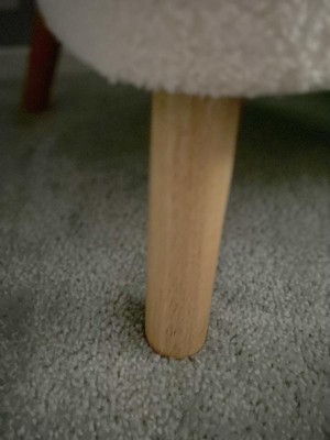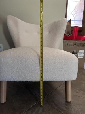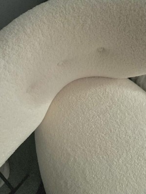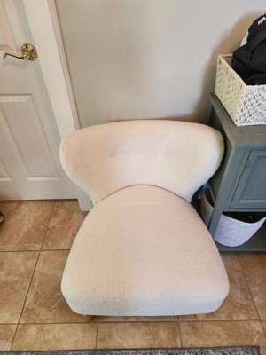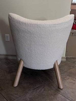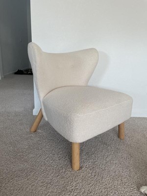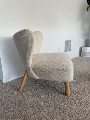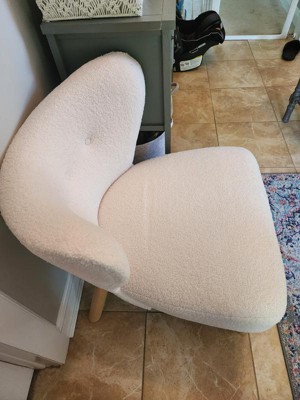 This sculpted faux shearling upholstered accent chair in cream is the epitome of luxury. This cream accent chair features a sculpted design with curved back. The wooden legs complement the look. This chair is very eye-catching. This chair is very soft and comfortable to sit in. I foresee many mornings lounging in this chair drinking my coffee and reading a book.