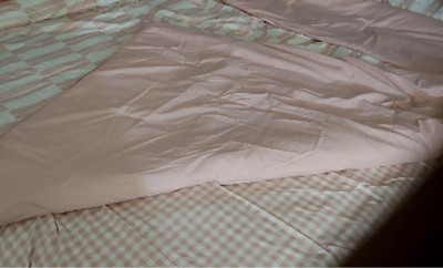 • A: Yes, the comforter features a dash stripe print that reverses to a solid light pink.