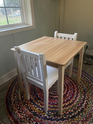 [This review was collected as part of a promotion.] This wood table and 2 chair set is just perfect for daughter's bedroom. This set is of good quality, and it is very sturdy. It was easy to put together. The girls love it and use it to do their homework and to eat lunch. It can also be easily wiped clean. Great Table and Chair set.
