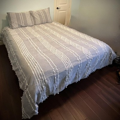 [This review was collected as part of a promotion.] INK+IVY - Kara 3 Piece Cotton Jacquard Duvet Cover Set Gray- Cali King This set is perfect to update the bedding in our master. Seems to be made of good quality material. Held up well in washer and dryer before we used. The gray brightened up the room and gives it an airy feel. Definitely happy with the duvet set