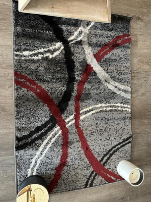 World Rug Gallery Contemporary Abstract Circles Design Red 2' x 3' Door Mat: Geometric, Pet Friendly, Stain-Resistant, Low Pile