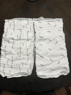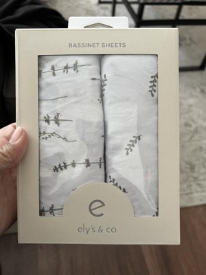 These are Ely's & Co. Baby Fitted Bassinet sheets it’s a pack of two. They have different little leaf designs. The color on the sheets are white with the forest grey leaves. The sheets are soft and thin they are 100% combed jersey cotton. They fit my twins bassinet perfectly and they don’t come off. These sheets are universal so they should fit any bassinet.