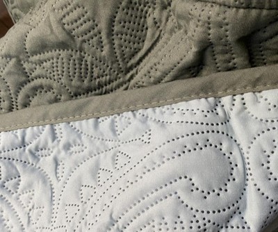 Feels good on the loveseat as in cosmzy and I like it is washable as well as the pattern/motif. However, after buying 2 and washing in cold before use, as instructed on package, the color is not a light grey or even tan or beige or off white— it is clearly blue. I returned one of the 2 thinking I would find a purpose and FIND one that really matched. I ordered the dark green with light gray reverse. NOPE. The reverse is also clearly BLUE. The PACAGE shiws green and light gray but SAYS MID GRAY/LIGHT GRAY. THIS is a QUALITY CONTROL issue. Feels as if they simply selling whatever comes from the factory overseas. They MUST KNOW about the colors