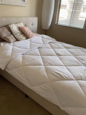 [This review was collected as part of a promotion.] I can’t even begin to tell you how comfortable this thing is apprehensive at first about it being a white blanket but every time I get in my bed, I feel like I am in a hotel. This keeps you warm, but not overly hot. I think this is good enough to use year round. This is easy to wash and definitely something I would purchase on my own.