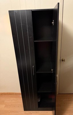 Rayborn Small Wood Kitchen Pantry with 2 Doors and 4 Shelves Black Oak - Hillsdale Furniture: Freestanding, Slim Profile, Brushed Nickel Hardware
