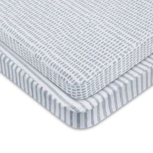 - The comfort of our soft and breathable, lightweight, 100% Superior Quality Combed Jersey Knit Cotton creates a buttery soft sleeping surface for your baby to sleep on. This convenient two-pack features modern classic, abstract stripes, and splashes patterns, designed in an exquisite misty blue to complement baby boy's nursery decor. You can be rest assured that your baby's sleep surface will always be covered and protected with a clean, stylish, and soft cotton sheet with this two-pack!