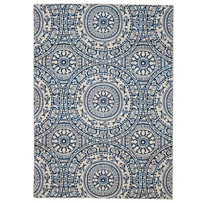 7'x9' Kai Washable Outdoor Rug Blue/Ivory - Linon