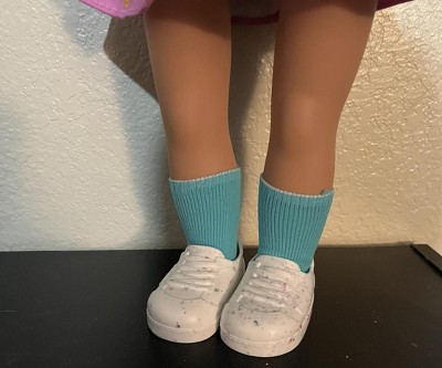 Refresh their 18-inch doll's wardrobe with sweet fashion! The Our Generation Lovely Hearts outfit lets fashion lovers leap into dress-up fun as they style their doll bestie with a cute heart-print dress, bright blue socks, and white sneakers. Plus, this set includes a pink beanie hat to create oodles of fresh styles! Designed in cheery colors, kids can mix and match each piece with other Our Generation doll clothes to brighten up fashions and set new trends. This outfit has easy-open closures to quickly put on and remove as kids explore storytelling and self-expression. Compatible with most 18-inch dolls, doll clothes, and accessories. Dolls sold separately.