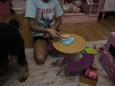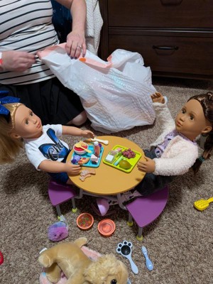 We love the cafeteria table and the food that came with it. The accessories are so adorable. We use the table for both Our Generation and glitter Girl Dolla.