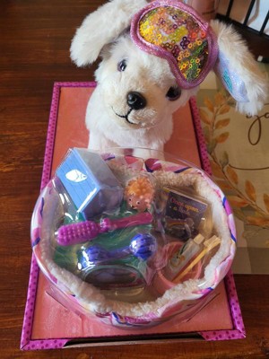 [This review was collected as part of a promotion.] How cute is this puppy play set? The bed, accessories are very realistic of what puppy would need and like. The sleep mask is a super cute touch. Every made is for small hands to play with and perfect for ages Id say 4 to 6.