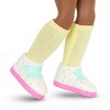 Playtime sure is sweet with Sweet Sprinkles, the 14-inch doll outfit from Glitter Girls! From its cotton candy colors to its donut print, this set of doll clothes is enough to make your favorite doll’s mouth water. The pink sweater is super cute with its sprinkled donut embroidery, and the skirt shimmers in shades of pastel pink and blue. Also included is a yellow pair of socks to add a pop of color, plus a hair tie dotted with a colorful sprinkle print. Don't forget the sneakers – the shoes in this outfit slip right on to your 14-inch dolls, and each piece is easy to change for seamless playtime. Finish the look with pink, round sunglasses and glittery fanny pack with turquoise waistband. Sweet style! Glitter Girls doll clothes and accessories are compatible with most 14-inch dolls. Recommended for kids ages 3 years old and up.