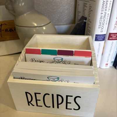 Outshine Co White Wooden Recipe Box with Cards and Dividers