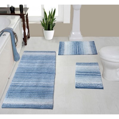 Set of 3 Radiant Collection Blue Cotton Ruffle Pattern Tufted Bath Rug Set - Home Weavers