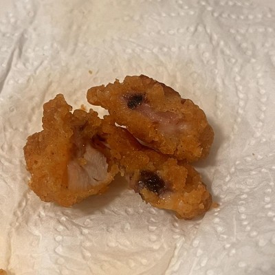It's fine. Chicken bites are strangely sweet. They smell like syrup. Some are good, some are chewy.
