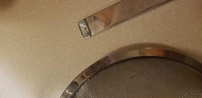 I use the small and medium strainers on a regular basis for straining and sifting, but the first time I used the large one, the handel broke off before I could even start using it. Just from hand washing and drying it, i shook the handle a little and it snapped off. The other two are great though