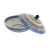 This versatile covered bowl is a beautiful blend of functionality and artistry, making it an essential piece for both serving and display. Measuring 6.5 inches in diameter and 2 inches deep, it’s the perfect size for side dishes like cranberry sauce, relishes, or dips, and can also be used as an individual covered soup dish. Beyond the table, it doubles as a charming container for trinkets, jewelry, or decorative accents. Each bowl is shaped and painted by hand, ensuring every piece is unique and showcasing the vibrant colors and timeless designs that define Polish pottery. High-fired at extreme temperatures, the ceramic achieves lasting durability, resisting chipping and everyday wear while preserving its glossy finish for years of use. The snug-fitting lid keeps contents fresh while adding an elegant finishing touch. Smooth and double-glazed inside and out, this covered bowl cleans easily and is safe for the microwave, dishwasher, and freezer. Whether serving food, adding storage, or displaying as décor, this piece is a thoughtful gift and a lasting treasure of artisan craftsmanship.