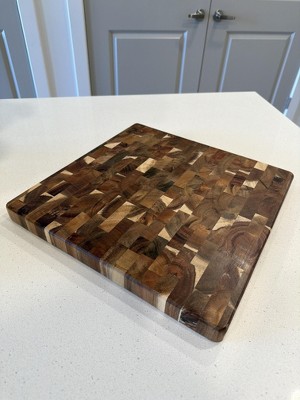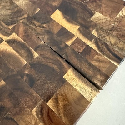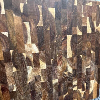 Beautiful, solid cutting board. The end-grain acacia is thick, durable, and gentle on knives. It has a nice weight to it so it doesn’t slide around while chopping, and the natural wood pattern looks great on the counter. Easy to clean and perfect for everyday use or serving. Definitely feels like a high-quality piece.