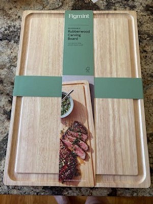 This is a review of Figmint's new 14"x20" Rubberwood Carving Board with Juice Groove. I received this for free in exchange for my honest review. What a beautiful cutting/carving board and just the perfect addition to your home for all your holiday needs! It's made of very durable rubberwood, which also happens to be considered an environmentally friendly choice because it's made from trees that have already served their purpose in producing rubber! I learned something! Note that it is two-sided, so has no rubber stoppers. One side has the grooves for catching meat juices. The other side is plain. This board is very versatile as it can be used for carving meats (maybe a holiday turkey or roast?), or can even be used as a serving/charcuterie board. This will be a welcome addition to any kitchen so would also make a great gift!