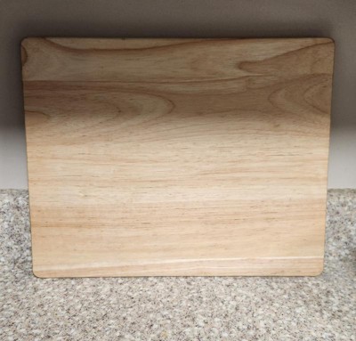 I really like this cutting board. It has a very smooth surface, sits evenly, and doesn’t slide around the counter. It’s also very solid in weight — seems high quality. I like that rubberwood is a repurposed resource, as it is a byproduct from making rubber.