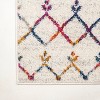 In shades of ivory, pink, blue, orange, this Moroccan trellis is Inspired by timeless vintage designs and crafted with the softest polypropylene available. This beautiful linear pattern is made modern in a bright ivory yarn power loomed for durability. The simple geometric stripes, triangle and diamond motifs will give a fresh look to any room.